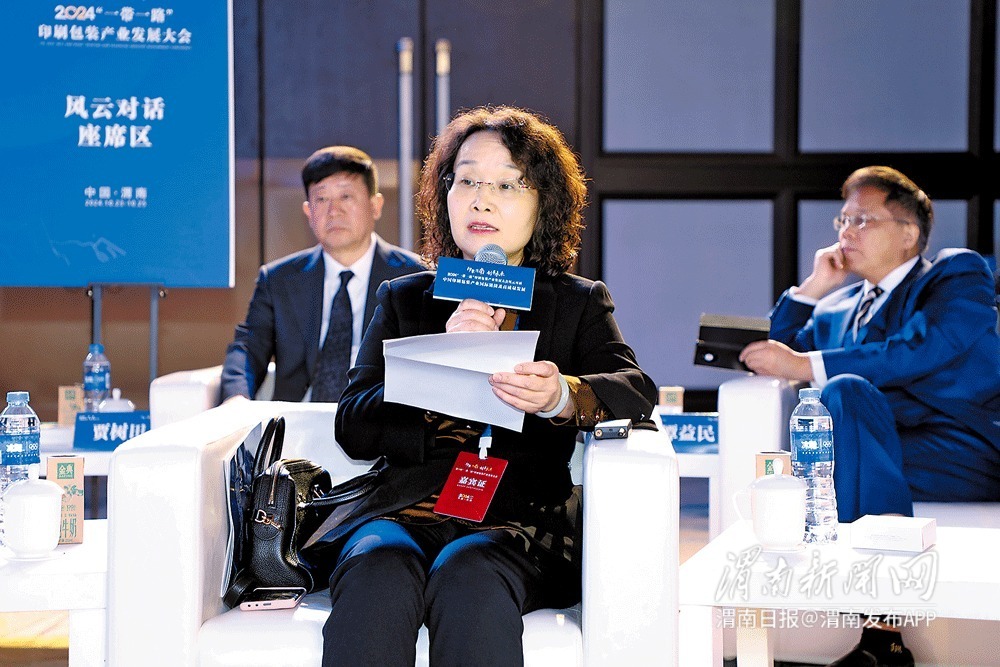 “推動(dòng)‘高端智能印刷裝備整機(jī)制造’‘精裝智能聯(lián)動(dòng)線設(shè)計(jì)’‘?dāng)?shù)字印刷噴墨打印頭研發(fā)’等關(guān)鍵卡脖子技術(shù)的自主創(chuàng)新;形成以渭南為核心的印包產(chǎn)業(yè)、高等院校、科研院所、知名企業(yè)加強(qiáng)耦合的協(xié)同創(chuàng)新發(fā)展格局。”在風(fēng)云對(duì)話環(huán)節(jié),北京印刷學(xué)院黨委常委、副院長(zhǎng)劉尊忠教授以《聚集區(qū)位—高校—產(chǎn)業(yè)多維優(yōu)勢(shì)助力渭南印包產(chǎn)業(yè)高質(zhì)量提升》為題,與參會(huì)人員共同探討“一帶一路”大背景下印刷包裝產(chǎn)業(yè)高質(zhì)量提升的實(shí)踐路徑。